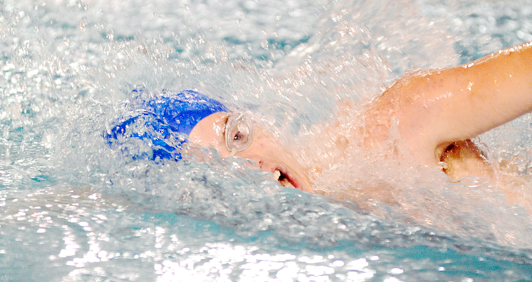 Lewiston High School senior Alex Mills swims to a first place finish in the 100 yard freestyle against Mt. Ararat in Lewiston on Friday.