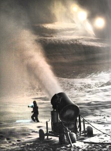 Over the weekend, the snowmaking operation was cranked up at Lost Valley. The snow is blown into big piles so that if it rains or gets warm, it doesn’t melt as fast.