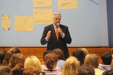Addressing students at the Oxford Hills Middle School on Dec. 19, the congressman and candidate for governor spent the majority of his time answering pressing questions on the economy, the environment, and the daily life of a politician.