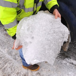 The bridge was closed on Sunday after five or six cars were damaged by ice falling on to the roadway. It will remain closed until further notice, Talbot said.