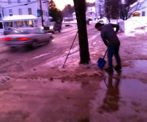 Although there was no serious flooding incidents, the heavy rain on top of at least two feet of snow overwhelmed the town’s stormwater system, preventing the water on the roads from draining, he said.