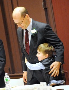 Macdonald and Lewiston’s 14 other elected officials were sworn into office during an abbreviated ceremony in Callahan Hall.