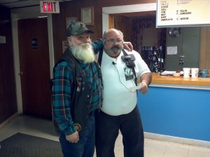 Dixfield Legion Riders director Charlie Green, left, presents a check to Commander Randy Canwell of the Swasey-Torrey American Legion Post 100 in Dixfield. The money will help the Legion with heating expenses. The nine members of the Dixfield Legion Riders raise funds through swap meets, cribbage tournaments and raffles, Bridget Daigle, first vice president of the Dixfield auxiliary, said.
