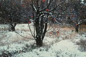 Another excellent work is titled “Apple Orchard Tesuque NM,” Dye imbibition print, (1981) by Paul Caponigro. A tree in an apple orchard is covered with snow which looks like Maine right now. Its composition is symmetrical and it captures a lyrical beauty.