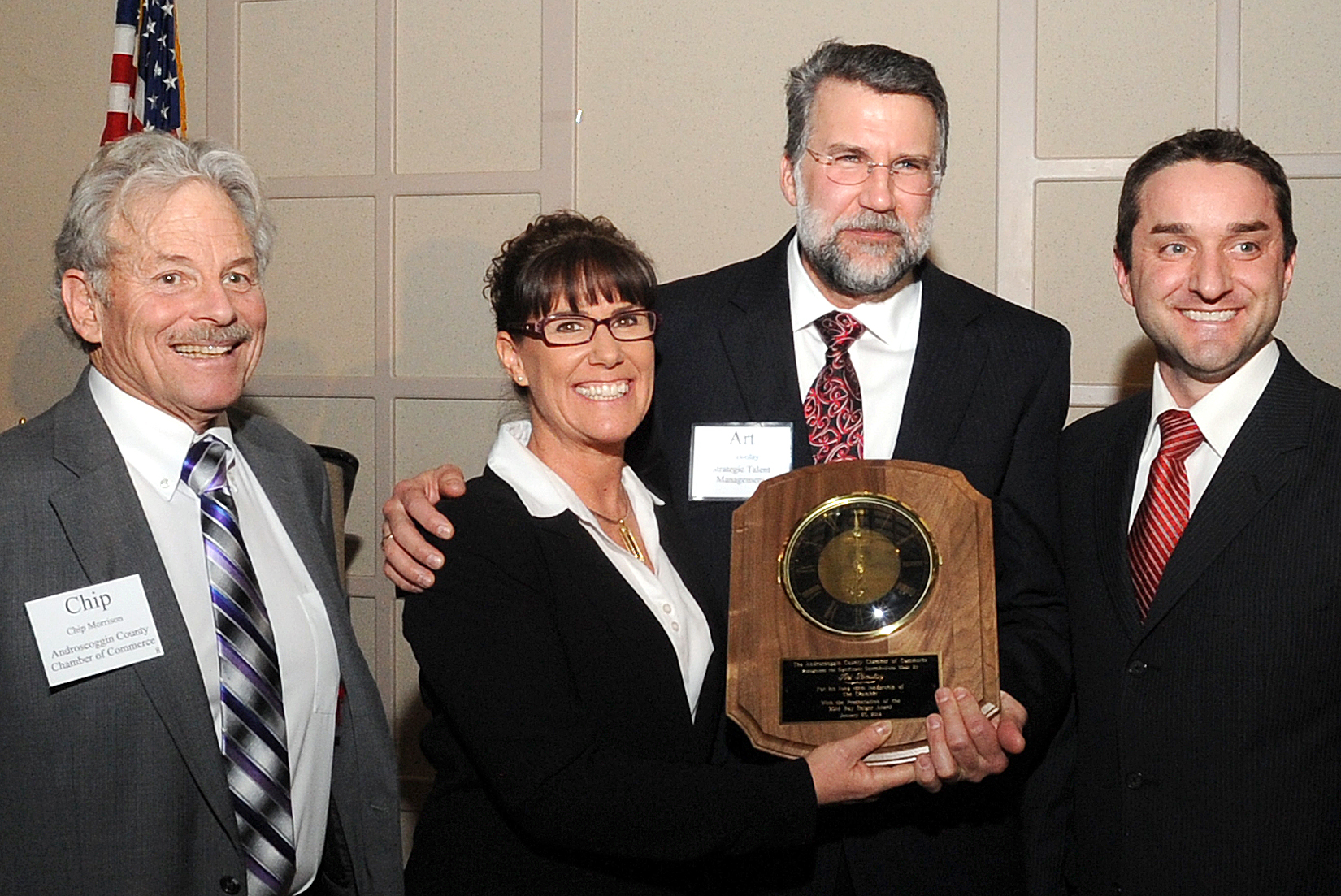 Patti Gagne, chairwoman of the chamber’s board of directors, was master of ceremonies for the evening’s awards. She reviewed the chamber’s activities, including the addition of 120 new members in the past year. Androscoggin County Chamber of Commerce has become the state’s largest chamber organization with 1,382 members, and she thanked 300 chamber volunteers for their contributions to the group’s success.
