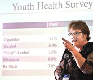 Wiegman, in that position since 1987, speaks with students directly when they get in trouble over some kind of substance. She also keeps a close watch on the trends and on input from the students themselves. At the forum Thursday night, she had plenty of numbers to share with the group following a recent survey of 900 LHS students and 500 from the middle school.