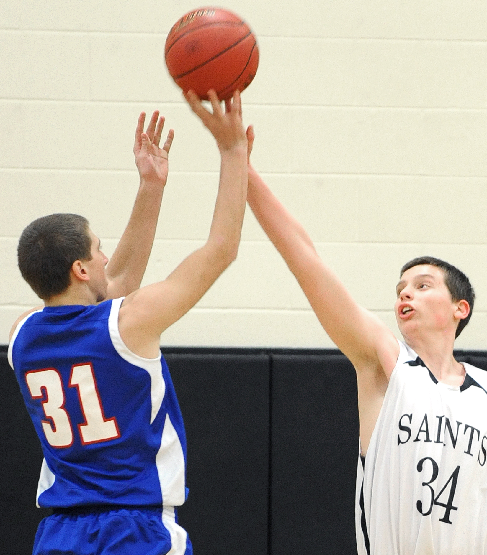 Led by Dyer’s 19 points, 14 rebounds, four assists, four steals and three blocked shots, the Saints closed down Callahan Family Gym for the season in style and kept their Class C West playoff hopes alive and kicking with a 50-41 victory over Oak Hill.