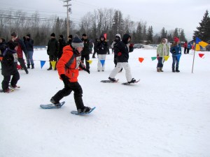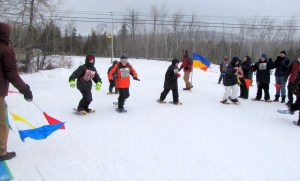 At Carrabassett Valley Academy, snowshoers sprinted 25, 50 or 100 meters. The time trials had three to six participants, Michael Baribeau, a member of the board of directors, said.
