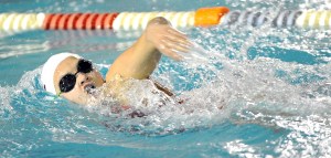 Edward Little’s Maggie Chirayath glides through the water en route to a first place finish in Friday night’s swim meet against Lewiston in the 200 yard freestyle event in a time of 2:17.29.