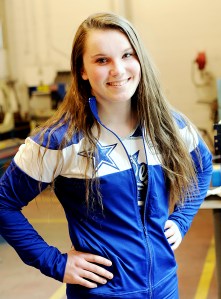 Senior Cassandra “Cassie” Regner is also co-captain of the cheering team, which won its fourth consecutive Eastern Maine Class A championship Jan. 25. They compete on Feb. 8 for the state title.