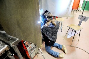 Welding, which uses intense heat to fuse metals together with a filler material, is intimidating at first, instructor Stewart said. After a day or two Regner said she felt more comfortable welding. Now, “I like everything about it. I find it so fascinating. It’s really cool how everything works together.”
