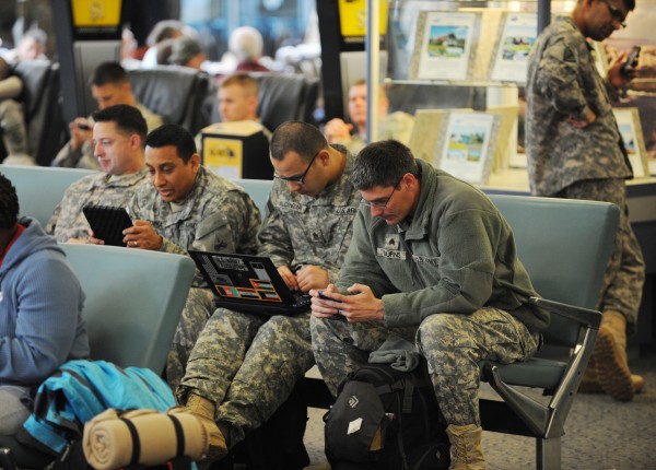 The flight transported military troops from Afghanistan and Kuwait and to many, including Col. Mark Eubank of the 4th Infantry Division from Michigan, the delay was nothing new. In the military it’s often hurry up and wait, he said.