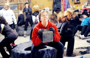 Inside, women wore hats, gloves and winter boots rather than sweats, sports bras and running shoes. Thirty women swung sledgehammers to Iron Maiden while their children played together outside in the snow during “Cub Class.”