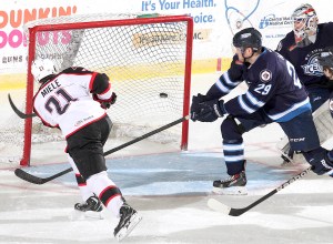 St. John’s pulled away in the second period as the Ice Caps scored two goals 61 seconds apart. The first goal came :23 seconds into the period as Andrew Gordon got a piece of Zach Redmond’ blast his sixth goal of the year. One minute later Brandon Kichton blasted in his tenth goal.