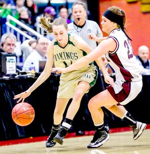 Winslow scored four quick points and a 3 by Morin made it 7-0. EL missed its first six shots and sputtered from the start as the Vikings built a 9-0 lead. EL’s first basket came with 3:24 left from Brooke Reynolds. After a Winslow hoop, EL ran off seven in a row. Molly Murray and Tianna Harriman 3s cut the deficit to 11-9.
