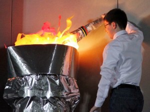A highlight of the ceremonies was the lighting of the cauldron by sixth-grade student Nathan Plourde. Plourde “lit” the cauldron in the school gymnasium with the smaller Olympic torch made from a touch light that had been relayed from classroom to classroom in the days leading up to the opening ceremony, Guerrette said.