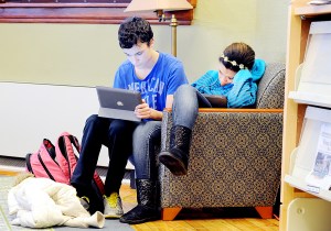 Jorge Butler and Mahkaila Belnavis work on their iPad tablet computers at the Auburn Public Library on Monday. Both Butler and Belnavis are 15-year-old freshmen at Edward Little High School in Auburn.