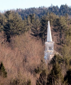 The 40-foot steeple of the 1860 North Waterford Congregational Church can be seen in the hills of North Waterford from Route 118. The steeple, which sits over a tower holding an 1872 Holbrook bell, underwent a major repair in 2009.