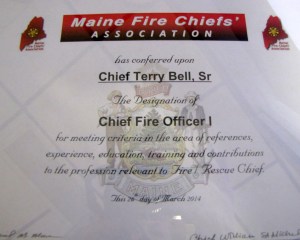 FARMINGTON — Fire Chief Terry S. Bell Sr. recently received certification as Chief Fire Officer Level 1 through the Maine Fire Chiefs’ Association.