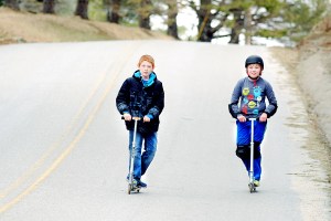 Tanner Jones, left, 10, and his cousin Cameron Johnson, 9, ride their scooters along Stevens Mill Road in Auburn on Wednesday. Both boys are fourth-grade students at Fairview Elementary School.