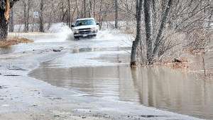 Route 120 was the first road closed on Tuesday because of flooding. Heavy rains fell Tuesday into early Wednesday morning before changing over to ice, sleet and snow, closing many more roads.