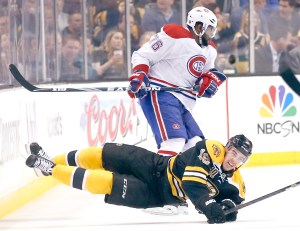 When Josh Gorges was sent off for holding 14 minutes into the second period — Boston’s first power play of the game — the Bruins repeatedly tested Price, holding the possession in the Canadiens’ zone virtually the whole 2 minutes and getting several good scoring chances.