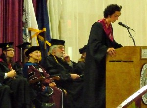 Sean Skillern of Naples, vice president of the senior class, gave the student address. An elementary education major and president of the local Rotaract organization, Skillern reminded graduates of the memories they’ve made in their time at UMF, and the friends that will last a lifetime.