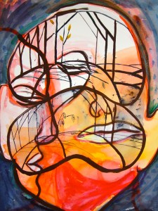 “The faces were a way of me describing the way the present seemed like the past; all three faces are essentially me,” Patterson said. “Also having the painting repeating the scene of the trees is a way to do that, too.”