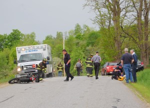 Troy Maheux, 19, of Wilton was injured Friday afternoon when the motorcycle he was riding crossed the centerline of Red Schoolhouse Road in Wilton and collided with a sport utility vehicle going in the opposite direction. The motorcycle traveled down the driver’s side of the SUV before Maheux was thrown into the middle of the road, Wilton police officer Derek Daley said. Maheux was wearing a helmet. The driver of the SUV, Alexander Dellarma, 48, of Wilton, was not injured. Dellarma tried to avoid the collision and his vehicle went off the road. Maheux was taken by NorthStar EMS ambulance to a hospital to be evaluated, Daley said. Daley was assisted at the scene by officer Mike Ryan and Wilton firefighters.