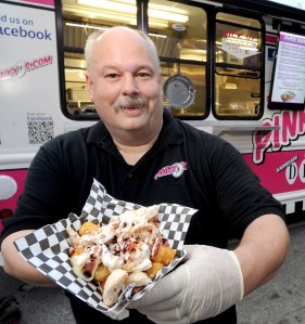Blasting his classic rock ‘n roll playlists from an iPod — both inside and outside the truck — Smith said he wants to bring fun to his customers. “Food trucks are all about fun,” he said. And fun to Pinky D’s involves Tater Tots!