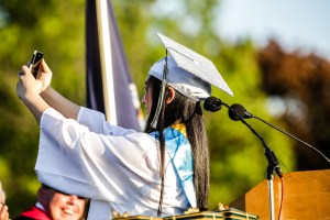 PARIS — With her back to the lectern, Salutatorian Evangeline Kim paused during the middle of her speech, lofted her smartphone, took aim and clicked, capturing an image of herself, the Class of 2014 and nearly 3,000 residents of Oxford Hills.