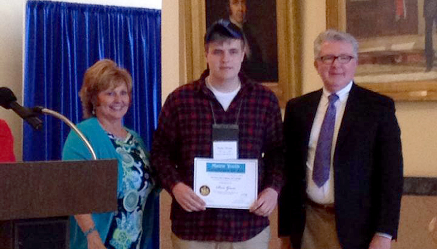 Maine’s first lady Ann LePage awarded a certificate to Gross. At the ceremony, she said, “These works of art are inspiring and showcase the talent of our youth. We are so glad to have the artwork on display. We truly feel that this is a program Mainers can be proud of and I hope visitors to Augusta will take the time to enjoy what these students have shared with our state.”