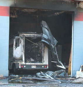 There were no injuries but there was extensive damage to equipment and the garage bays from flames that erupted in the engine compartment of a van, officials said.