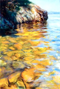 Stuckey has always brought art into her life and life into her art. As a teenager she studied various forms of art at Deering High School, and made silver jewelry in a studio in Ogunquit. When preparing for the show, Stuckey noted, “The images that come up in my paintings are of places where I have had long staring sessions. Some reference places I have known since early childhood. Living my life along the forested coastal and lakes regions of Maine, the essence of the landscape has great personal significance for me. My feelings of gratitude for the elemental world are vividly at the heart of my intentions for the paintings in this series.”