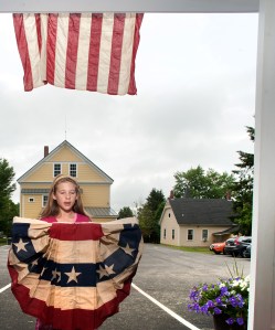 Amy Fryda, 11, of New Gloucester reads the Declaration of Independence for a crowd gathered inside the New Gloucester Historical Barn in New Gloucester on Friday morning.