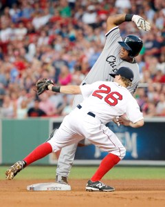 The Red Sox had a few good plays in the field, though. Center fielder Jackie Bradley Jr. made a diving catch of Flowers’ line drive in the second. In the seventh, Eaton doubled off the Green Monster, with the ball coming down off left fielder Jonny Gomes’ nose. Gomes retrieved it and made a throw that was relayed by third baseman Xander Bogaerts to catcher Christian Vazquez, who made a perfect tag on Alejandro De Aza.