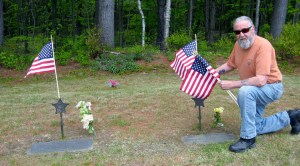 Don Beaulieu of the William J. Rogers American Legion Post places an American flag at the graves of Civil War soldiers Henry L. Farrington and Stillman Gurney at Pleasant Plains Cemetery in Auburn. Other veterans buried there include Revolutionary War soldier Noah Waterman and U.S. Army veteran Stephanie A. Leonard of Lewiston who died of injuries after her car crashed into the guardrail next to the cemetery on Route 4 in 2002. Maine law requires municipalities to place flags at veterans graves each Memorial Day.