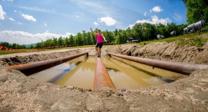 Staying dry and clean isn’t an option. More mud and a pond crossing were added to ensure this.