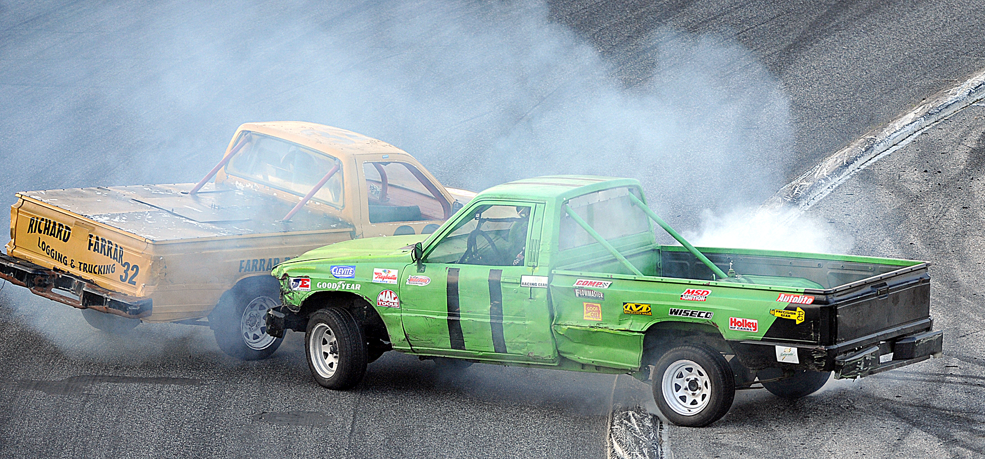 Milton’s McKenna took advantage of Brian Darling’s misadventure in lapped traffic to take the Sport Truck lead on lap 11 of 20. Darling was forced to hit the brakes and drift high in turn one to avoid contact, and McKenna dove low for the top spot.