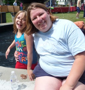 Over at the wishing fountain on the town common, on which vendors under canopies displayed their wares and other festival events took place, Emily Reed, 8, of South Paris was wading and splashing. Her mother, Debbie Reed, watched nearby.