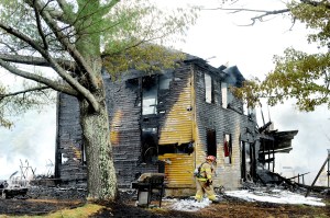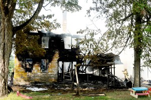 Less than two hours after firefighters arrived, the house had been reduced to a pile of blackened rubble with a lone chimney rising from it. One wall remained, but firefighters were expected to knock that down.