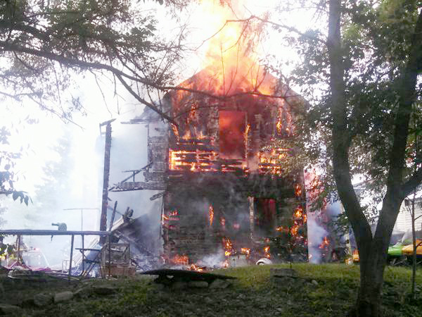 MATTAWAMKEAG — A firefighter looking out a side door of the fire station saw the fire that eventually destroyed a 2½ -story house, leaving several family members homeless on Thursday. Two firefighters and a resident were treated for heat exhaustion, officials said.