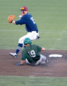 Poulin also saved himself a run in the eighth after surrendering a one-out triple to Kyle Stevenson. After luring Justin Courtney into a ground ball, he got Hillier to bounce to Chabot at first. Poulin raced to the bag, caught the ball and tagged Hillier in one motion.