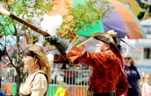 The pirate group was a hit Saturday, posing for pictures with fans young and old, offering demonstrations with guns, marching in the festival’s parade and generally livening things up.