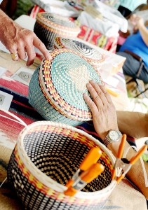 Her fancy baskets feature acorns, strawberries, corn, flowers and complex sweet grass, and her ash baskets have intricate weaving.