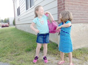 “See my backpack? I’ve got three kinds of pencils, one eraser is purple, one’s a blue eraser, and one’s a pink eraser.” The little girl was literally jumping up and down about starting kindergarten. “She’s very excited,” said her father, Chris Martel.