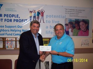 John Emerson, left, president of Emerson Chevrolet Buick Inc. in Auburn, recently presented a $500 check from the Leslie Emerson National Auto Dealers Association Charitable Trust to the Auburn-Lewiston YMCA. Steve Wallace, right, executive director of the Auburn-Lewiston YMCA, accepted the donation for the organization.