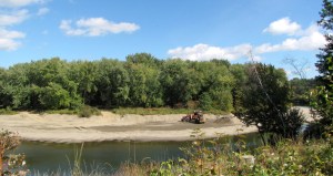 Farmington Public Works employees get sand for winter roads Tuesday from a sandbar on the Sandy River in Farmington Falls. The Whittier Road bank erosion project, on the left side of the river, worked out better than expected, especially in light of heavy rains and high river water this spring and summer, Public Works Director Denis Castonguay said.