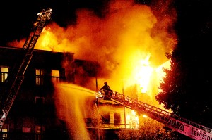 Lewiston and Auburn firefighters immediately began battling the blaze as people fled the building. Lewiston police officers held back the tenants and onlookers as more and more firefighters arrived.