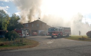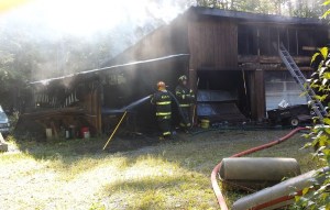 Firefighters from Chesterville, Farmington, East Dixfield, Jay, New Sharon, Temple, Vienna and Wilton were able to put out the fire quickly and prevent it from spreading to the house and into the woods.